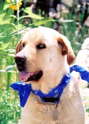 a very (very!) large, yellow dog. (Ah ha, the mysterious blonde