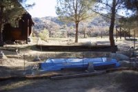It's the season for being thankful. We want to express gratitude to our special adoptive parents who sent their love, best wishes, and donations after the devastating fire in June. As many of you know, we came frighteningly close to losing the Center when a fire storm swept through Morongo Valley. We were able to safely evacuate the animals as the valiant fire fighters worked tirelessly to save our sanctuary. We had just caught our breath and begun repairs on the damaged structures when the rains came. The fire left the hillsides around the Center bare and vulnerable. The unprecedented rain caused rivers of water to flood the lower acreage and our workshop with 3 feet of water. We used a "trash" pump to divert much of the water, but the sheer volume of run off swamped our workshop, tools, and equipment.