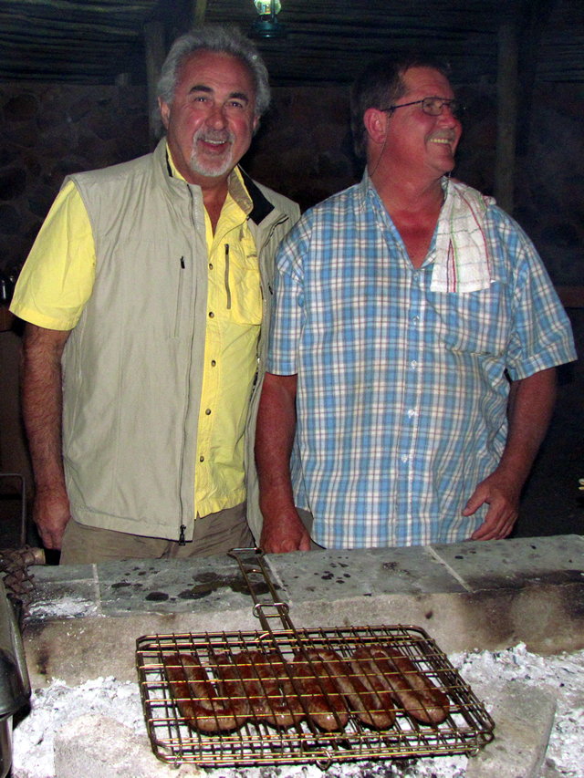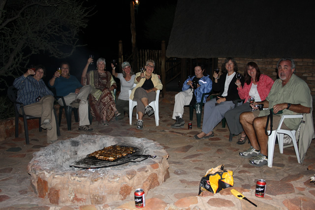 Each evening, after a stunning day of game drives, we enjoyed the luxury of gorgeous, private chalets with hot showers and electricity. Although the meals we had in restaurants were superb, the clients (now all good friends) especially enjoyed Dante’s exceptional culinary skills when he prepared luscious, braais (barbecues) under the glorious, star-studded sky as we listened to the animals “talk” until our hearts were beating chocolates ~~ an apt South African phrase that vividly expresses the joy we felt.