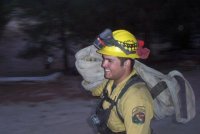 The fire fighters bedded down just outside our gates and watched for hot spots throughout the night. The air was still pungent with smoke and ash, and the fire, still out of control, was an eerie, jagged glow on our hillsides. We were concerned that the erratic winds would deliver the fire to our property again.