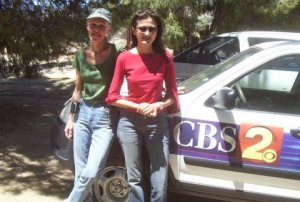 Sunrise brought the stark reality of just how close we had come to being consumed by the flames. The sight was so amazing that we had reporters from ABC, CBS, and Fox at our gates wanting interviews. The news crews shook their heads in disbelief at how we had managed to survive the fire relatively unscathed. The networks wanted a "happy" story amid all the ruin. The meerkats merrily obliged by getting "nose to nose" with the camera lenses and delighting the news crews with their endearing ways. Even Cogburn, the rooster, appeared on the national news.