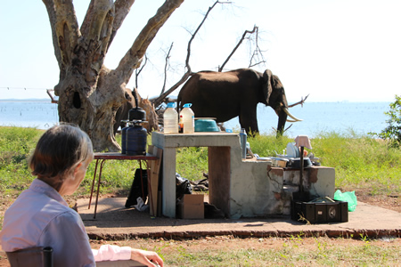 Elisabeth Spiro has done three tours of Africa with Dantes Liebenberg and me. She is NOT a tourist; she’s a traveler in Africa. She’s calm, intrepid, resilient, appreciative, and adventurous. The accommodations that we provided for her first two tours in Africa were posh chalets with all the amenities: Electricity, private bathrooms, and hot water. For her third tour of Africa, Elisabeth wanted to experience something a bit different ~ a month-long camping tour throughout all of Zimbabwe. Dantes put together a brilliant itinerary for her and we selected May 2015 for the trip. It was just the three of us: Dantes, Elisabeth, and me traveling through some of the most remote, pristine areas of Zimbabwe. Although Elisabeth was looking forward to the tour, initially she was a little nervous because she had never camped before. So, on several occasions, she visited me at Fellow Earthling’s Wildlife Center and I shared my “Camping in Africa” tip list with her.