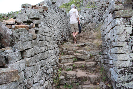 Pam Bennett-Wallberg ascends the steps at the ruins