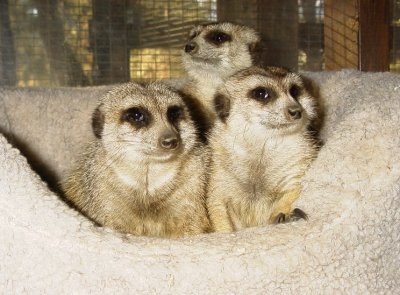 We like to save the best for last, so in closing, we want to let you know there are two motion pictures featuring meerkats currently in production! Animal Planet revealed this news to us some time ago, but we were sworn to secrecy until the announcement was made after Pam was interviewed by the New York Times on December 17, 2006. Both films are mentioned in the article. One movie is currently being filmed at the Meerkat Manor site by Animal Planet and the other is being filmed at another site by by the BBC (British Broadcast Corporation). Both movies will debut in theaters in December 2007! It certain seems to be shaping up to be the "Year of the Meerkat!"