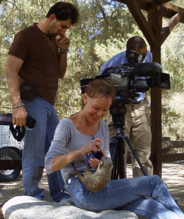 Pam Bennett-Wallberg gives a meerkat briefing to the Today Show film crew prior to "Take One!"
